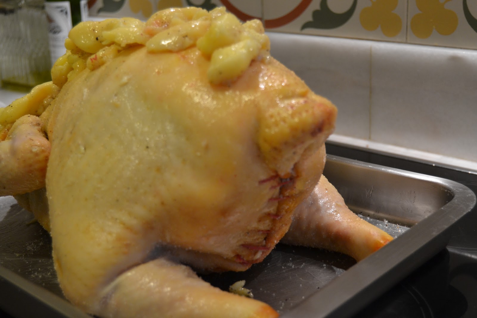 El mio fue una pularda también rellena y desde luego como tu bien dices el tiempo de horno es imprescindible y bien regadito.Supongo que el tuyo fue de campo campo, que suerte .