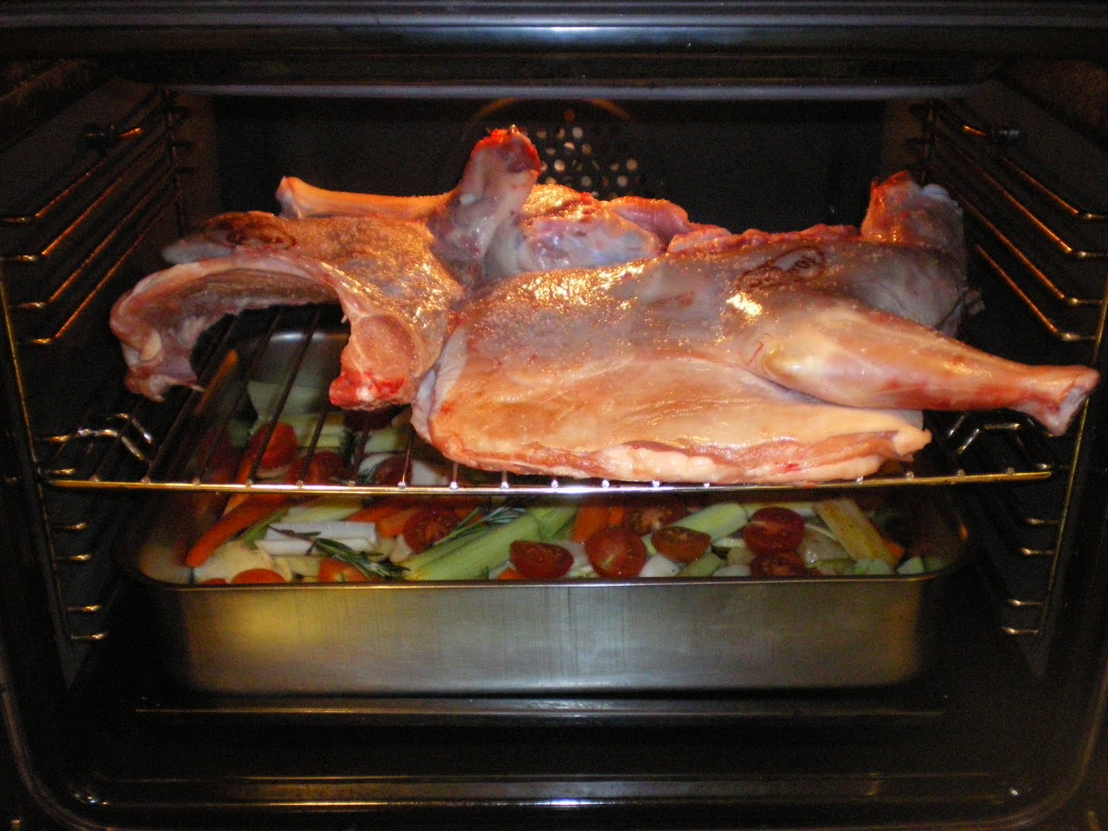 8.-Introducimos el cordero en el horno durante 8 minutos a 180º C, y posteriormente, descendemos la temperatura a 170ºC (horno convencional) durante 1 hora y media. Es recomendable darle la vuelta a los cuartos, cuando hayan transcurrido 45 minutos más o menos.