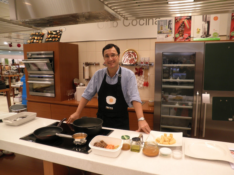 Me hacía ilusión que una de las recetas de Gastronomía en verso figurara en el libro- recetario que ha sido editado y publicado por esta entidad. Os confieso con toda honestidad que no había leído con detenimiento las bases del concurso y me limité a presentar varias recetas del blog en formato papel. Mira tú por donde, me llamaron para comunicarme que habían seleccionado no sólo una sino tres recetas de las que había presentado al concurso y para mi sorpresa, que tenía que cocinar y presentar los platos en la 5ª planta de este centro comercial en A Coruña durante los días 12,13 y 14 de diciembre.
