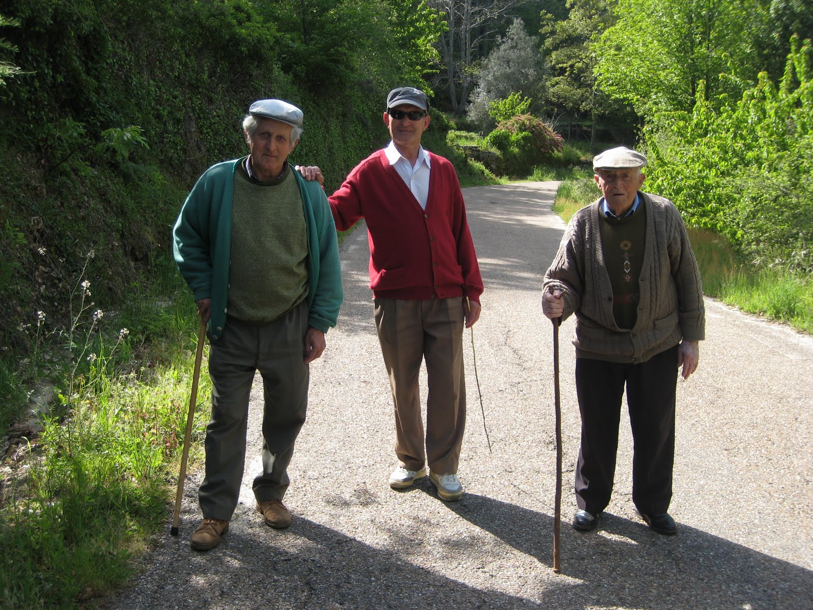 En la totografía superior, de derecha a izquierda os presento a José (93 años), Arcadio de (76 años) y a Lucas de 64 años, vecinos de la zona y compañeros de camino.