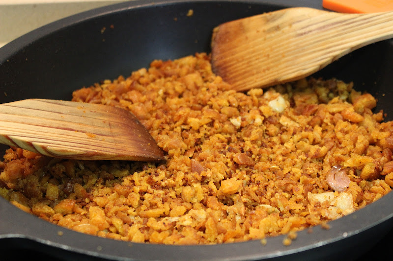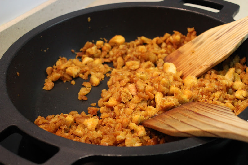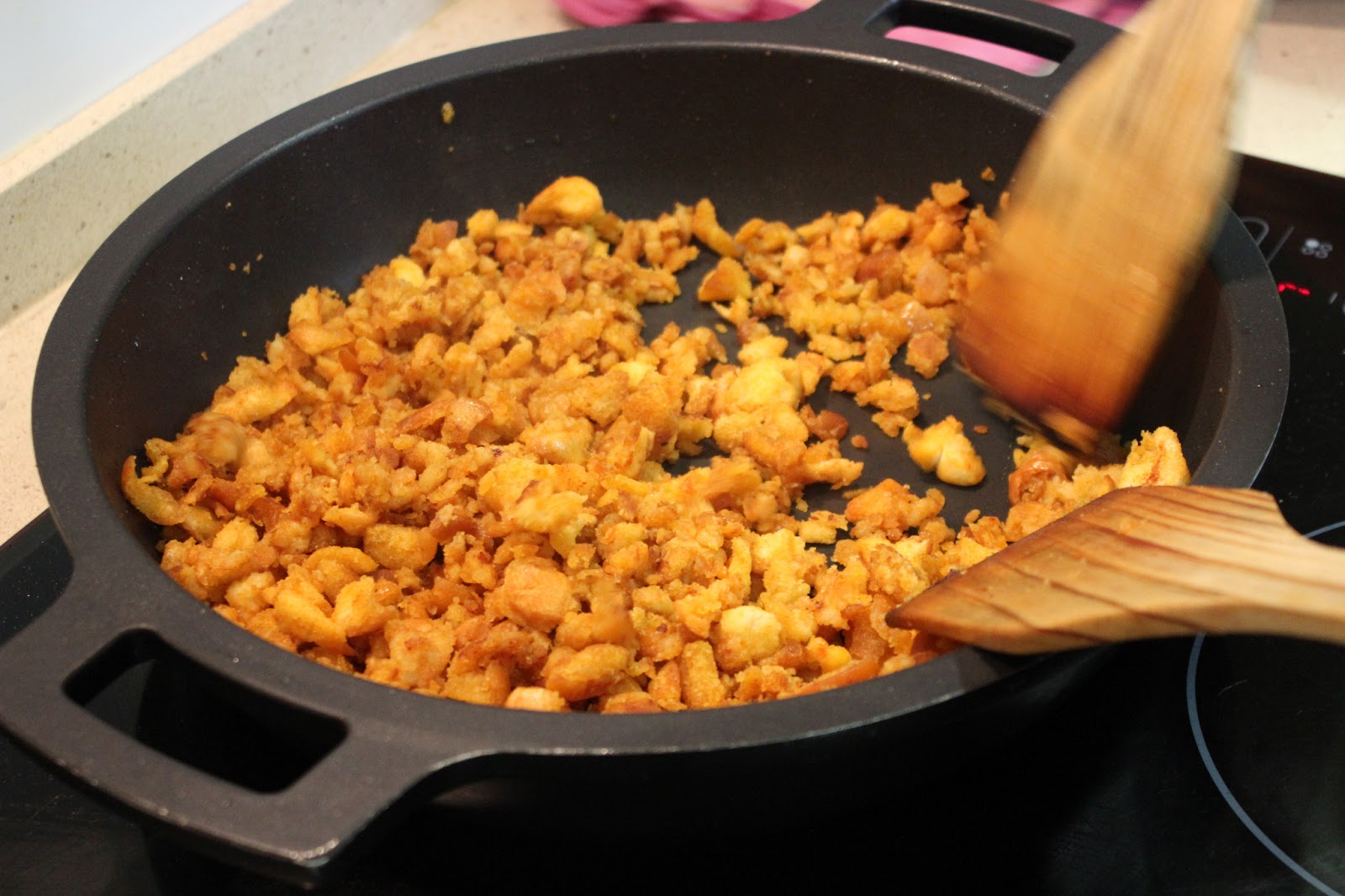 13º.- Esta tarea es tal vez la más importante en la preparación de las migas por lo que iremos degustando cada 10 minutos su textura y sabor rectificando el punto de sal por si fuera necesario. Sorprendentemente el tiempo que he empleado en obtener el punto de textura de las migas que a mí personalmente me gusta, jugosas en su interior y ligeramente crujientes en su exterior ha sido de 25 minutos.