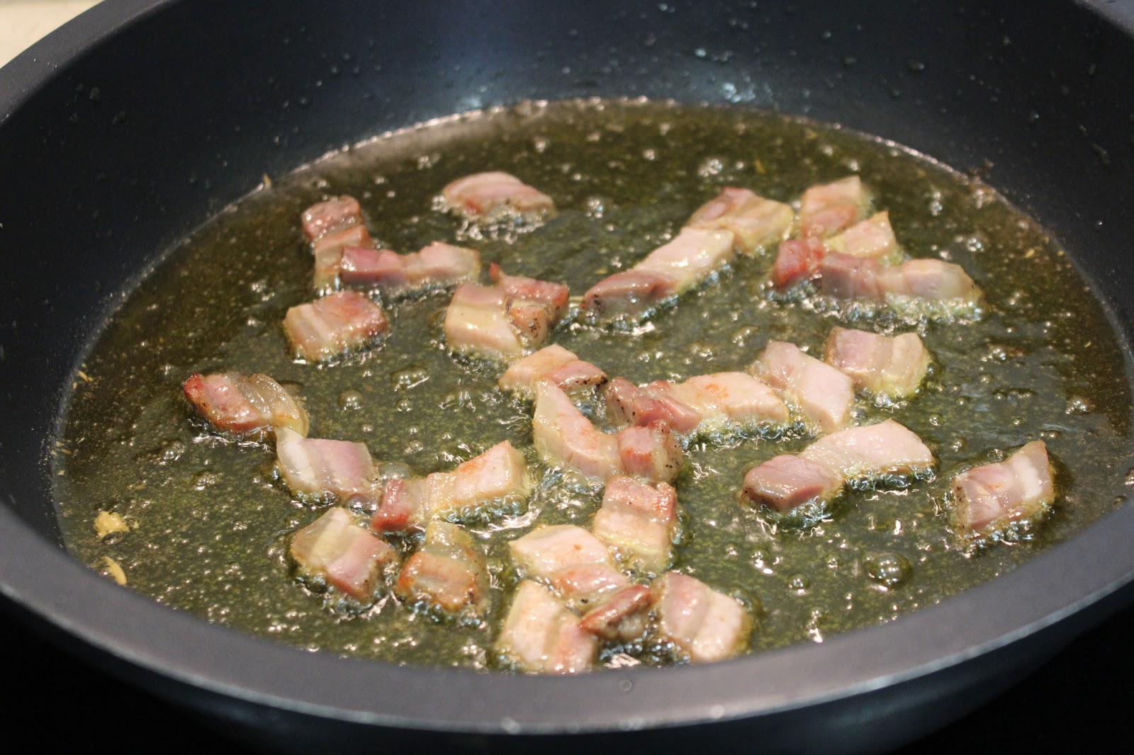 9º.- A Continuación doramos la panceta -7 en vitro- durante unos minutos a nuestro gusto y reservamos.