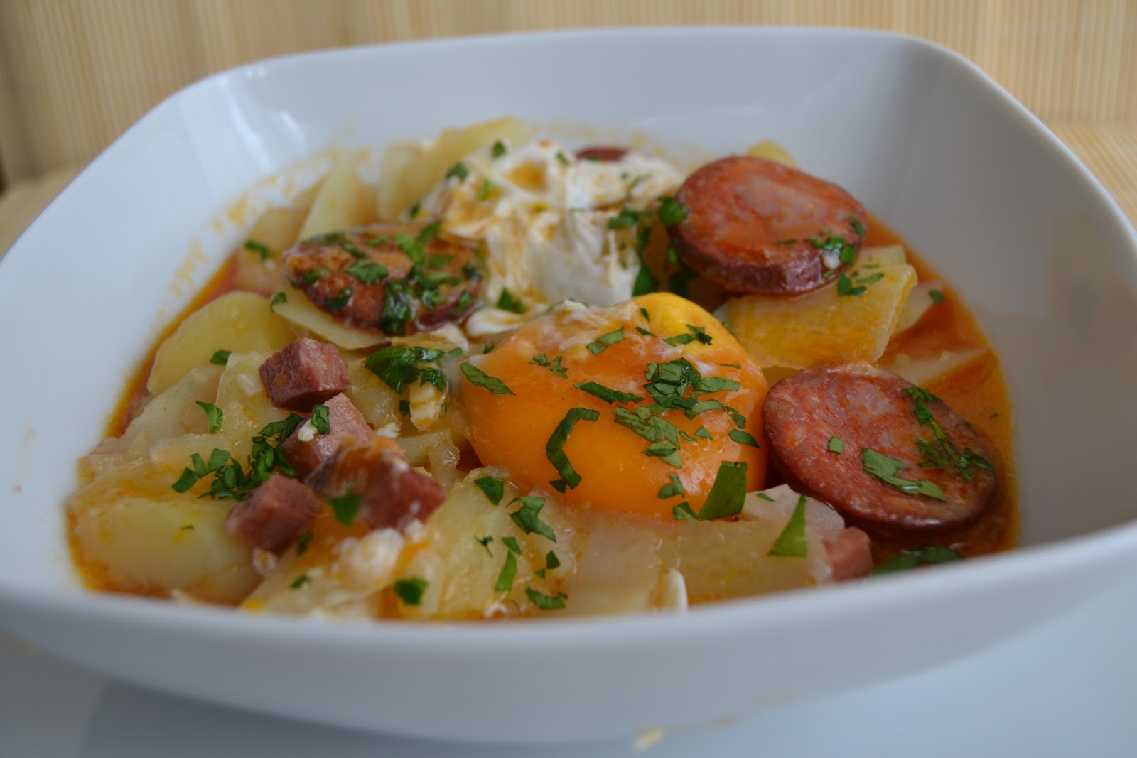 me ha quedado con tres ingredientes: patatas, chorizo y huevo, este plato tiene que estar de muerte!!!!! ¿donde está el pan? no se puede dejar ni gota en el plato!!! un abrazo