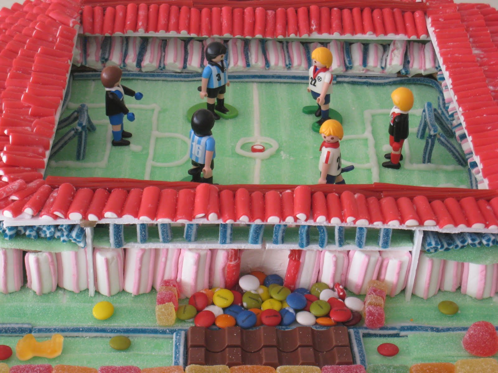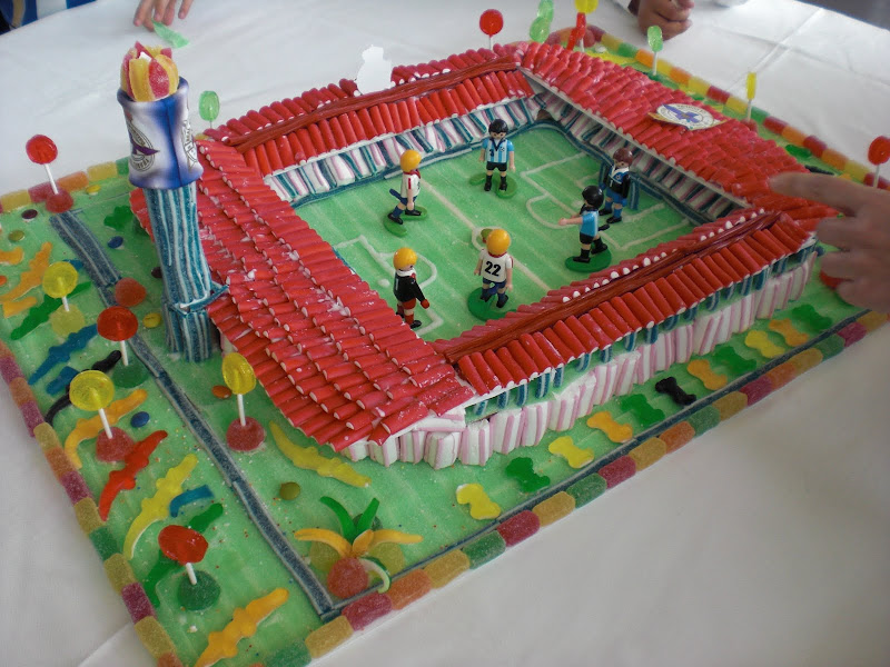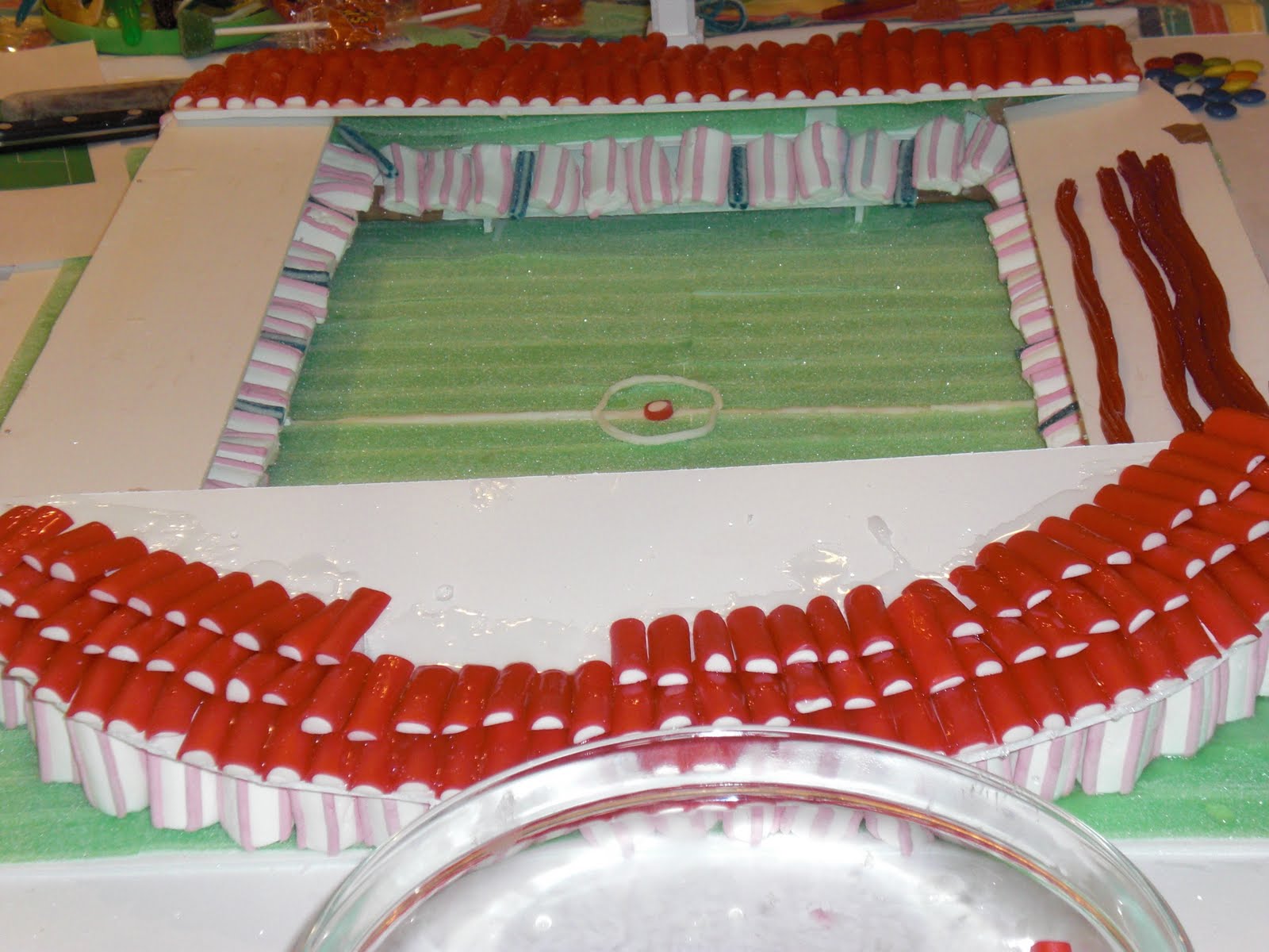 Como podéis ver en el siguiente vídeo, estas mujeres que son unas artistas muy creativas han dado forma al estadio recubriendo la maqueta con múltiples y variadas golosinas. Para adherir las piezas a la maqueta, han utilizado como ingredientesa gua y azúcar prepararando un almíbar espesito y caliente.